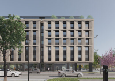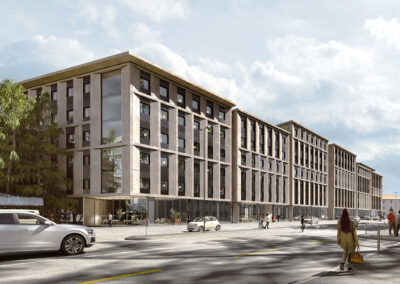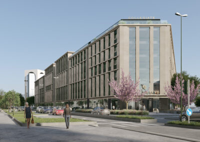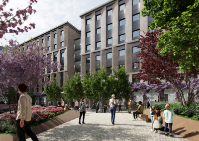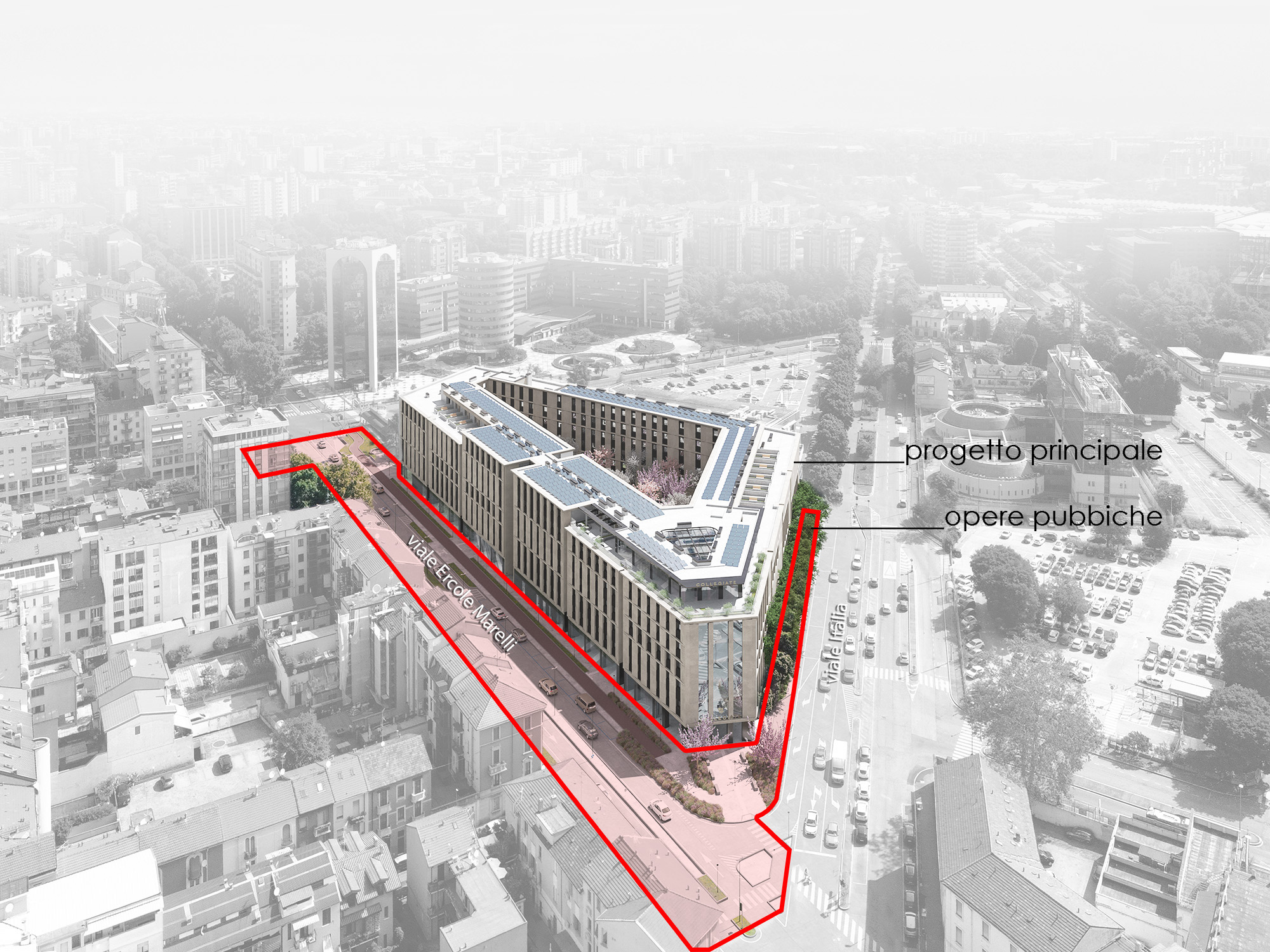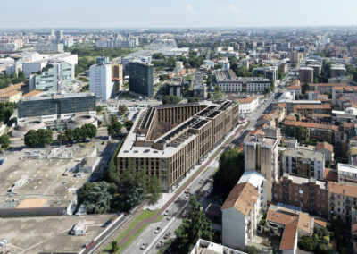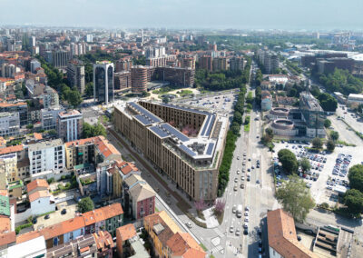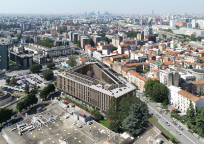 Il progetto prevede la realizzazione di una residenza per studenti intorno ad un ampio giardino, ideata per offrire un ambiente moderno, funzionale e sostenibile. Sono previsti spazi comuni quali aule studio, sale riunioni, aree relax e ricreative e palestra, per il giusto equilibrio tra privacy, studio e socializzazione. Sulla base di altissimi standard qualitativi – efficienza energetica, gestione delle risorse idriche, materiali sostenibili, qualità dell’aria interna e riduzione delle emissioni di CO₂ – l’immobile ambisce alla certificazione LEED GOLD. Sono state inoltre concordate delle opere pubbliche da realizzarsi in contemporanea e rivolte alla comunità del circondario.